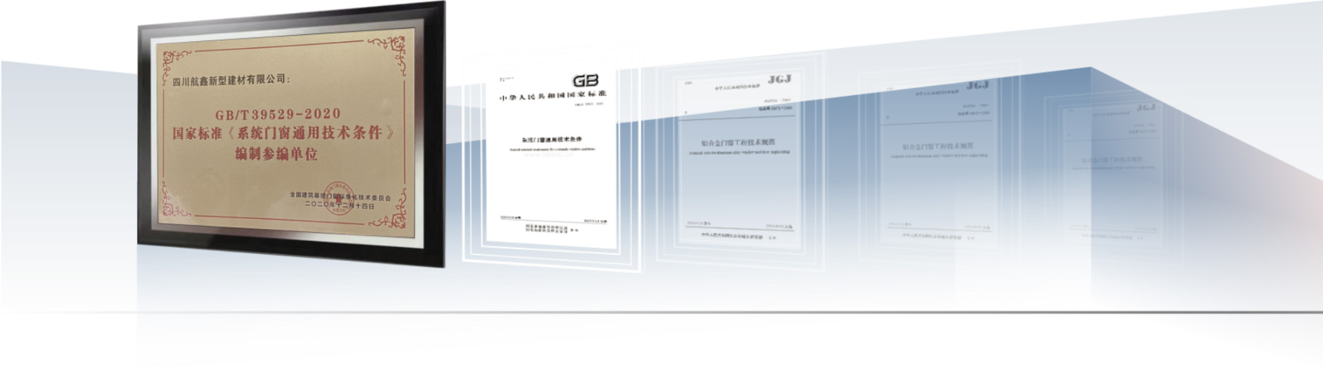 积极参与了幕墙门窗行业的7大国家、行业、地区标准制定。体现了航鑫的研发实力和企业责任担当,